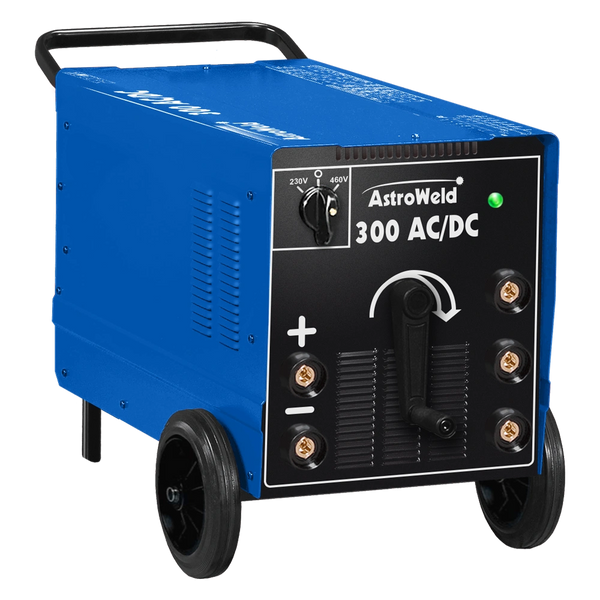 Single-phase professional AC or DC welding units, on wheels, with cooling fan. Stepless control of the welding current. Ideal for welding rutile, basic, and stainless-steel electrodes.